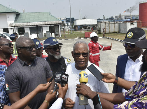 Pic.. Authority Chief Executive, Nigerian Midstream and Downstream Petroleum Regulatory Authority (NMDPRA), Mr Saidu Mohammed (M); Managing Director, Aradel Refinery Company (AFC), Mr Gbite Falade(2nd, R) and others during the Authority Chief Executive’s working visit to AFC facility in Ahoada East in Rivers State. 0189/SUN/JAN/25/2026/Chidi Ohalete/HB/NAN