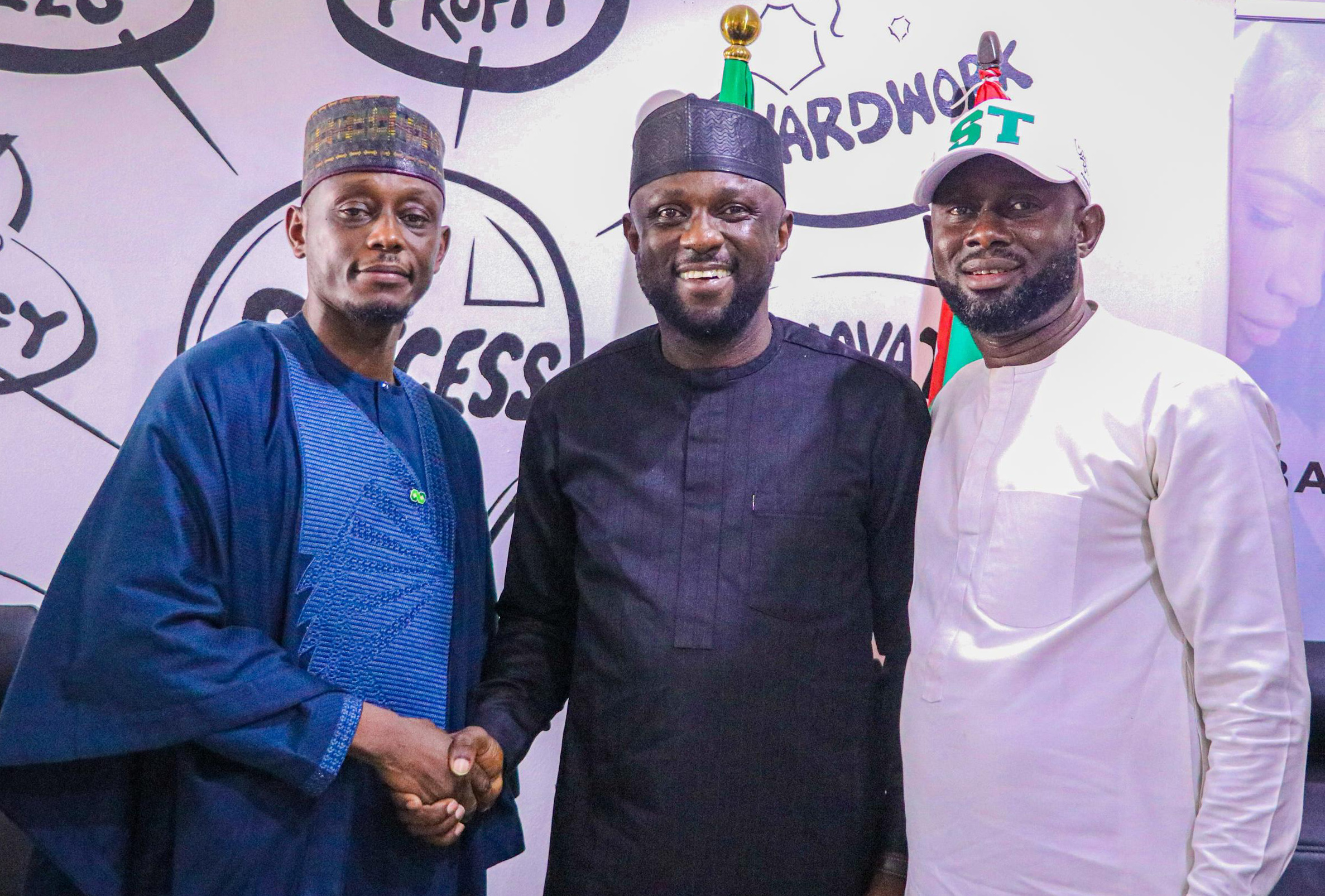 [caption id="attachment_7575" align="alignnone" width="300"] Pic.5. From left: Secretary, Tomorrow Is Here Movement (TIHM), Chief Cletus Akalusi; President, THM, Chief Tony...
