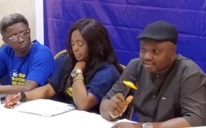 Pic.1. From left: Country Programme Director, AIDS Healthcare Foundation (AHF) Nigeria, Echey Ijezie; Executive Secretary, NINERELA+, Amber Itoha and General Secretary, Nigerian Union of Allied Health Professionals and Joint Health Sector Unions, Martin Egbanubi, during a news conference urging the European Union to stop blocking health equity regarding the World Health Organisation pandemic agreement by AHF, in Abuja on Tuesday (17/3/26).