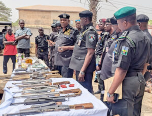 CP inspects weapons recovered from suspected criminals in Kaduna