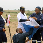 Pic. Deputy Director/FCT Coordinator, Federal Ministry of Livestock Development (FMLD), Dr Ozoemena Uche (3rd, R); Assistant Chief Scientific Officer/Team Lead, FMLD, Mrs Hannatu Gawu (2nd, R) and other team members setting the flies trap during the Tsetse Fly Survey and Vector Control Exercise at Paikokore Grazing Reserve, in Gwagwalada Area Council, FCT Abuja.