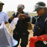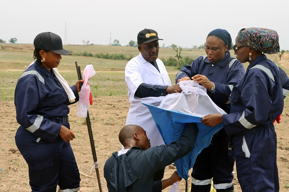 Pic.. Deputy Director/FCT Coordinator, Federal Ministry of Livestock Development (FMLD), Dr Ozoemena Uche (L), with other team members removing the trapped flies during the Tsetse Fly Survey and Vector Control Exercise at Paikokore Grazing Reserve, in Gwagwalada Area Council, FCT Abuja.