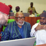 Pic.. From left: Member, House of Representatives Committee on Appropriation, Rep. Alex Ikwechegh; Deputy Committee Chairman, Rep. Igariwey Enwo and the Chairman of the Committee, Rep. Abubakar Bichi, during the committee’s 2025 budget assessment session with the Minister of Finance and Coordinating Minister of Economy; Minister of Budget and National Planning and the Chairman, Revenue Mobilisation Allocation and Fiscal Commission, at the National Assembly Complex in Abuja on Wednesday (25/2/26).