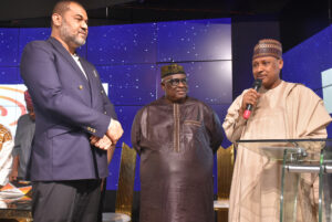 Pic.8. From left: Chairman 2025 IBAN AGM Steering Committee, Chief Raymond Dokpesi(Jr); Chairman, Independent Broadcasting Association of Nigeria Dr Ahmed Ramalan and Minister of Information and National Orientation, Alhaji Mohammed Idris, during the 2025 Independent Broadcasting Association of Nigeria 2025 Annual General Meeting and Conference in Abuja on Thursday (20/11/25).