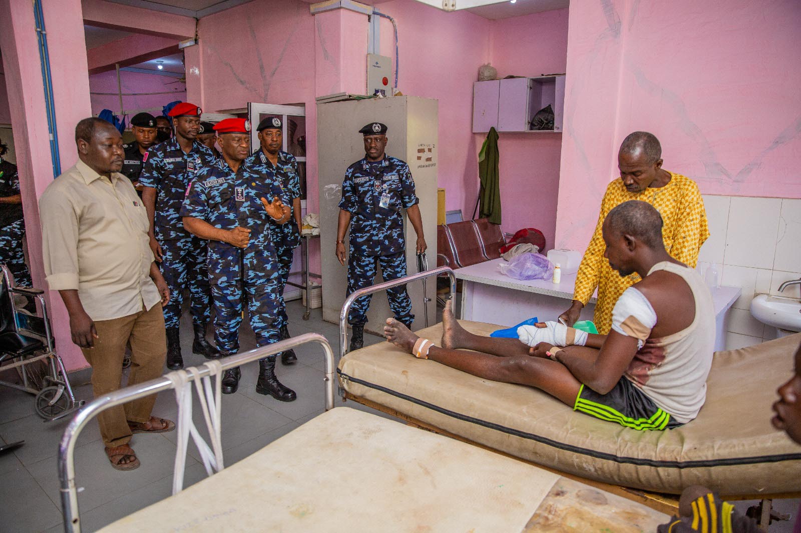 Pic. IGP Olatunji Disu (M), fanked by other senior Police officers during his visit to victims of Borno explosion at Maiduguri Teaching Hospital in Maiduguri State on Tuesday (17/3/26). 0143/TUE/MAR/17/2026/Johnson Udeani/ICE/NAN