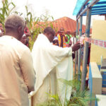 Pic.. National Assistant Chaplain, Rev. Fr. Francis Ejiro of Minna Diocese, cutting the tape during the inauguration of Purissima Hospital and Maternity and Free Medical Outreach at Angwandalandi Community in FCT on Saturday (30/8/25)