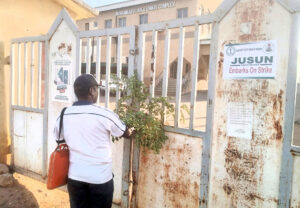 Pic.2. A view of the sealed front gate of Kaduna State high Court of Justice, during the ongoing strike by the Judiciary Staff Union of Nigeria (JUSUN) over non-compliance agreement reached for the last negotiation with the State Government in Kaduna. MON/FEB/16/2/2026/Ibrahim Bashir/JMH/NANPic.1. Member of the Judiciary Staff Union of Nigeria (JUSUN), Kaduna Branch, sealing the front gate of Kaduna State high Court of Justice, during the ongoing strike by JUSUN over non-compliance agreement reached for the last negotiation with the State Government in Kaduna. MON/FEB/16/2/2026/Ibrahim Bashir/JMH/NAN