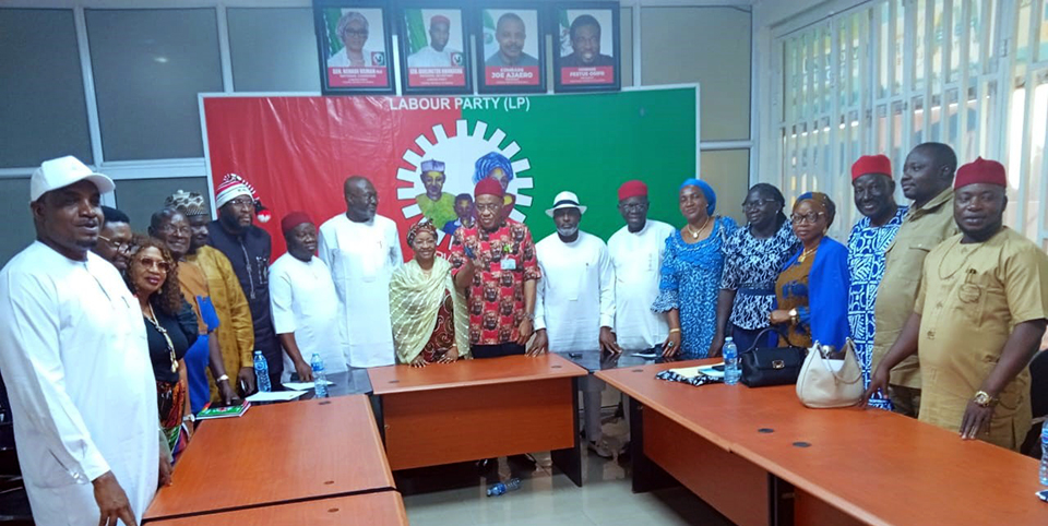 Pic.. From left: Members of the Labour Party (LP) House of Representatives Caucus, Rep. Ibe Okwara; Rep. Alozie Munachim; Caucus Leader, Rep. Ginger Onwusibe; National Chairman of LP, Sen. Nenadi Usman, other members, Rep. Obinna Aguocha; Rep. Amaobi Ogah and the Deputy National Chairman of LP, Prof. Theophilus Ndubuaku, during the LP’s leadership meeting with House of Representatives Caucus, at the party National Secretariat in Abuja on Friday (20/2/26).