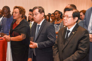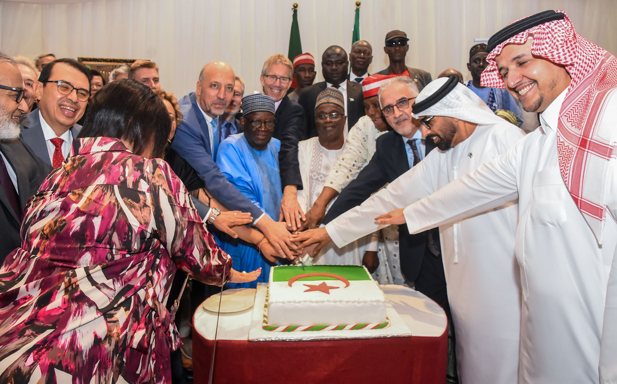 Pic. 1. Ambassador of Algeria to Nigeria, Amb. Hocine MEZOUED (3rd R); The UAE Ambassador to Nigeria, Salem Saeed Al-Shamsi (2nd R), Former Chief of staff to late former President Buhari, Prof Ibrahim Gambari (5th L) and other members of the Diplomatic Community, during the celebration of Algeria National Day in Abuja.
