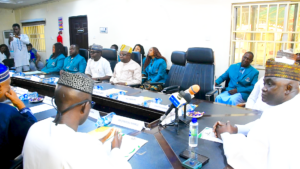 The Director General of NTAC, Dr Yusuf Yakub (R), some Management staff and volunteers during an orientation exercise for the volunteers to be deployed to st Kitts and Nevis at the NTAC office in Abuja on Friday (19/12/25).