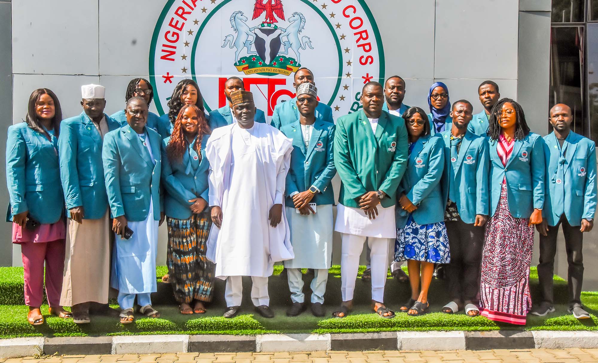 Director General of NTAC, Dr Yusuf Yakub (M); with other Volunteers to be deployed to st Kitts and Nevis, during their orientation exercise at the NTAC in Headquarters in Abuja on Friday (19/12/25).