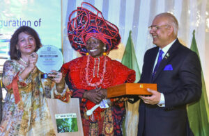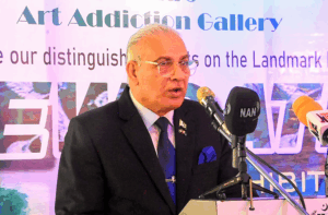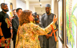 Pic. 18. From left: Renowned curator and owner of Art Addiction Gallery, Ms Anila Adnan; CEO of Nike Arts Gallery, Chief Nike Davies-Okundaye and Pakistani High Commissioner to Nigeria, Retired Maj.-Gen. Sohail Khan, during an inaugural Art Exhibition, theme; ‘Unlocking creative frontiers to build an enduring bond between Pakistan and Nigeria in Abuja. 0325/JUNE//29/6/2025/Anthony Alabi/NANPic. 19. Pakistani High Commissioner to Nigeria, Retired Maj.-Gen. Sohail Khan (2nd R); CEO of Nike Arts Gallery, Chief Nike Davies-Okundaye (M); renowned curator and owner of Art Addiction Gallery, Ms Anila Adnan (L); and other members of the Diplomatic Community, during an inaugural Art Exhibition, theme; ‘Unlocking creative frontiers to build an enduring bond between Pakistan and Nigeria in Abuja. 0326/JUNE//29/6/2025/Anthony Alabi/NAN