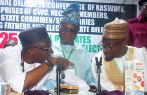 Pic.11. From left: Outgoing National President, National Association of Scrap and Waste Dealers Employers of Nigeria (NASWDEN), Uko Iwaudofia; Chairman, Founding Fathers/Board of Trustees, NASWDEN, Abdullateef Sulaiman; Vice Chairman, Founding Fathers of the Association, Akilu Hassan-Mohammed and Incoming National President, Fatai Adisa-Ogunwale, during 2025 National Delegates Conference/National Executive Council Election of NASWDEN in Abuja on Wednesday (3/9/25). 0042/WED/SEPT/3/9/2025/Jimah Suleman/NANPic.12. From left: Outgoing National President, National Association of Scrap and Waste Dealers Employers of Nigeria (NASWDEN), Uko Iwaudofia; Chairman, Founding Fathers/Board of Trustees, NASWDEN, Abdullateef Sulaiman and Vice Chairman, Founding Fathers of the Association, Akilu Hassan-Mohammed, during 2025 National Delegates Conference/National Executive Council Election of NASWDEN in Abuja on Wednesday (3/9/25). 0043/WED/SEPT/3/9/2025/Jimah Suleman/NAN
