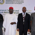 Pic.. From left: Authority Secretary/Legal Adviser, Nigerian Midstream and Downstream Petroleum Regulatory Authority (NMDPRA), Dr Joseph Tolorunse; Director, Legal Services, Ministry of Petroleum Resources, Terlumun George-Maria Tyendezwa and the Coordinator, Alternative Dispute Resolution Centre, NMDPRA, Dr Charles Nwachukwu, during the NMDPRA’s General Counsel and Legal Advisers Forum for Midstream and Downstream Petroleum Companies, in Abuja on Monday (14/7/25).