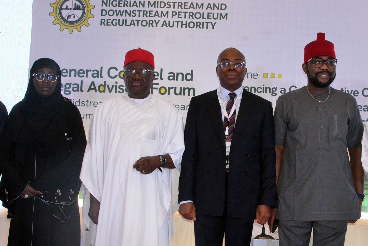 Pic.. From left: Executive Director, Economic Regulations and Strategic Planning, Nigerian Midstream and Downstream Petroleum Regulatory Authority (NMDPRA), Dr Zainab Gobir; representative of the Chairman, House of Representatives Committee on Petroleum Upstream, Rep. Dominic Okafor; representative of the Authority Chief Executive, Mr Ogbugo Ukoha and the representative of the Deputy Speaker, House of Representatives, Rep. Ikenga Ugochinyere, during the NMDPRA’s General Counsel and Legal Advisers Forum for Midstream and Downstream Petroleum Companies, in Abuja on Monday (14/7/25).