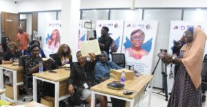 Health Communication Associate, Project Pink Blue, Faridah Banwo (R) addressing the participants during a training on Dicey Scroggins Patient Advocacy Fellowship for the cancers survival patients from various States organised by Project PINK BLUE-Health in collaboration with Psychological Trust Centre in Abuja
