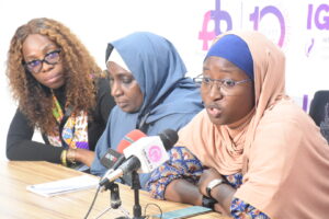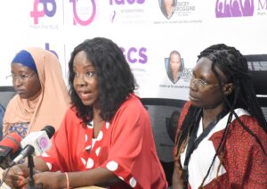 From left: Breast Cancer Survivor, Agu Sopunichi; Cervical Cancer Survivor, Hadiza Binji; and Health Communication Associate, Project Pink Blue, Faridah Banwo; during a news conference on Dicey Scroggins Patient Advocacy Fellowship program for the cancers survival patients from various States organised by Project PINK BLUE-Health in collaboration with Psychological Trust Centre in Abuja.