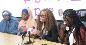 From left: Cervical Cancer Survivor, Hadiza Binji; Health Communication Associate, Project Pink Blue, Faridah Banwo; Breast Cancer Survivor, Agu Sopunichi; and the Cervical Cancer Survivor, Ivey Umeh, during a news conference on Dicey Scroggins Patient Advocacy Fellowship program for the cancers survival patients from various States organised by Project PINK BLUE-Health in collaboration with Psychological Trust Centre in Abuja.