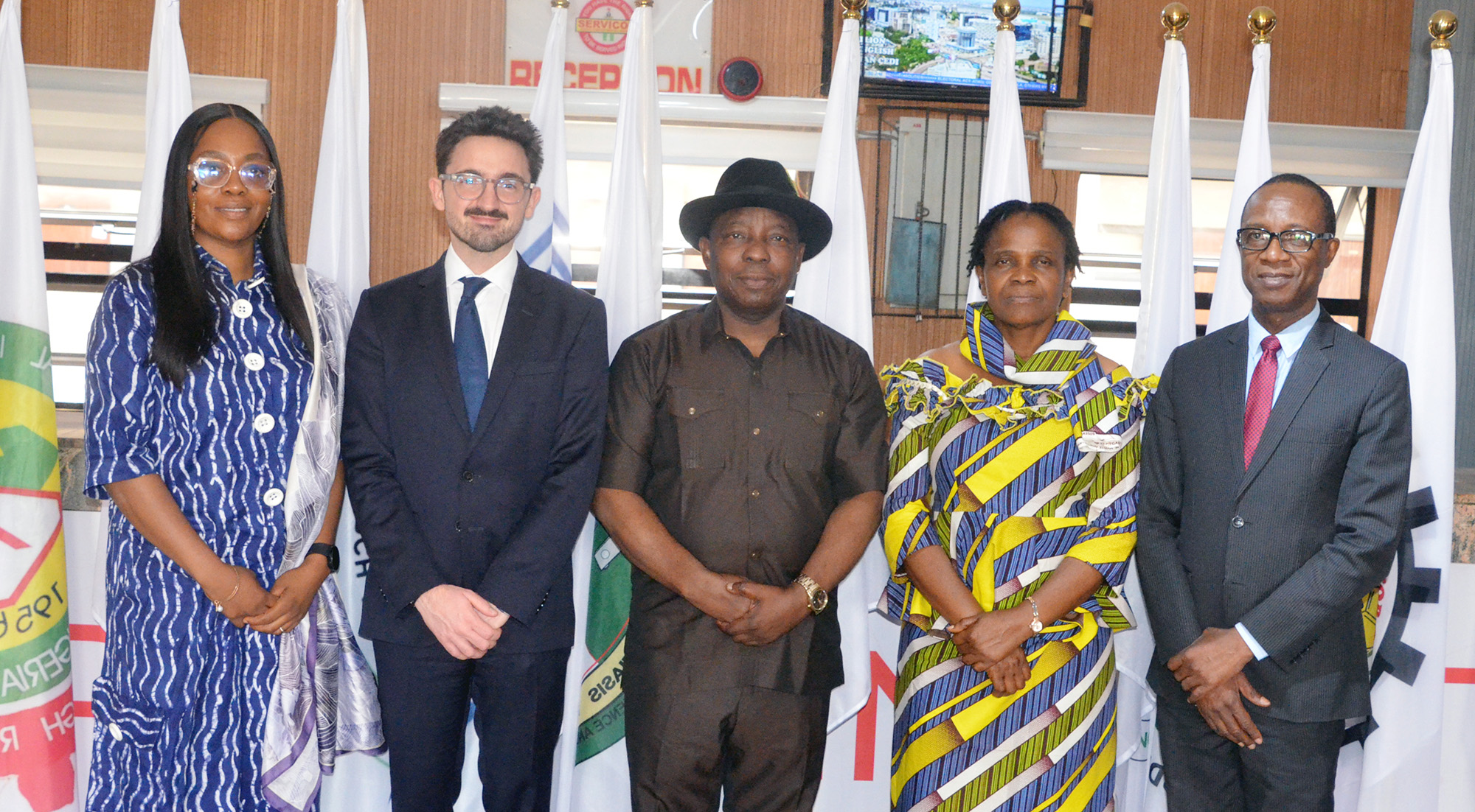 Pic.. From left: Technical Consultant, Global Cleantech Innovation Project (GCIP), Federal (FMIST), Ms Chisom Nwankwo; Associate Technical Expert, Division of Energy and Climate Change, UN Industrial Development Organization (UNIDO), Mr Luca Longo; Permanent Secretary, FMIST, Mr Philip Ndiomu-Ebiogeh; Director, Environmental Science and Technology, FMIST, Mrs Ogwuche Bernadette and the National Programme Officer of UNIDO, Mr Reuben Bamidele, during the visit of UNIDO delegation to the minister’s office in Abuja on Friday (27/2/26).